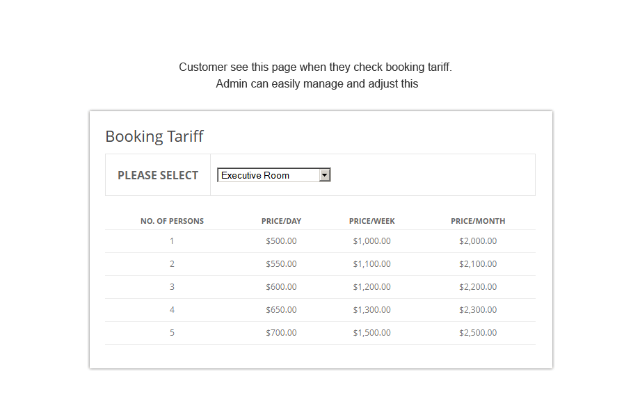 Offer additional services to your customers such as WiFi access, airport pickup or laundry cleaning. Add any option you want.