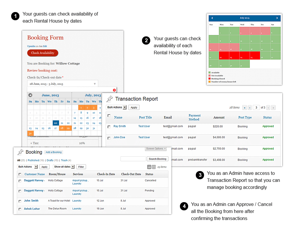 Handles everything from the initial enquiry/submission, to the booking confirmation and payment. With money generated by the site going into your account